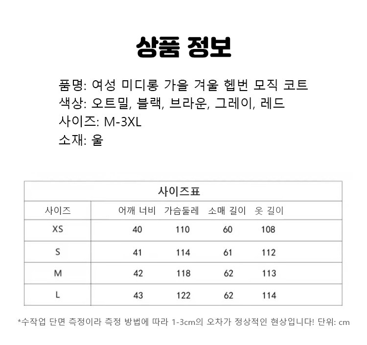 여성 미디롱 가을 겨울 헵번 모직 코트